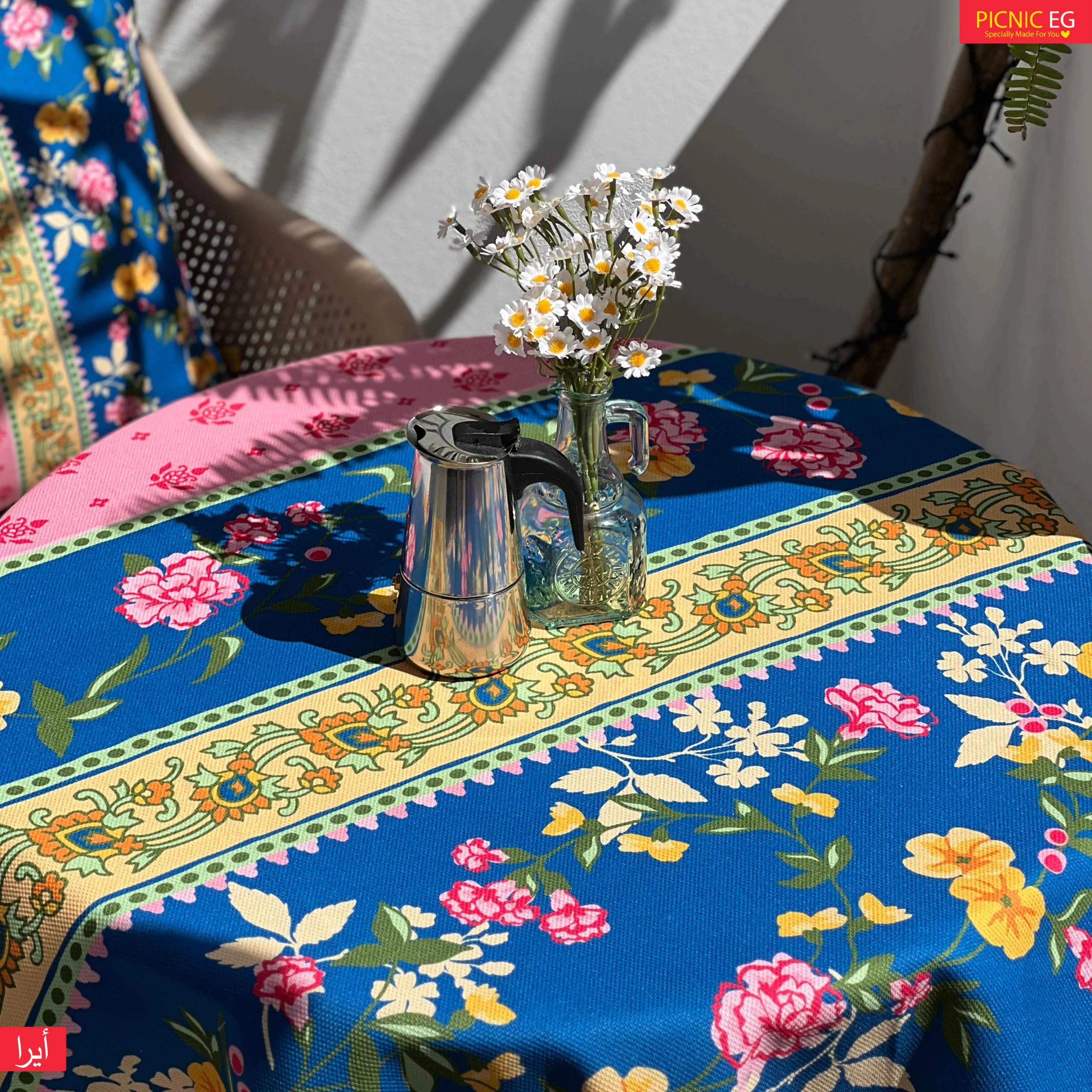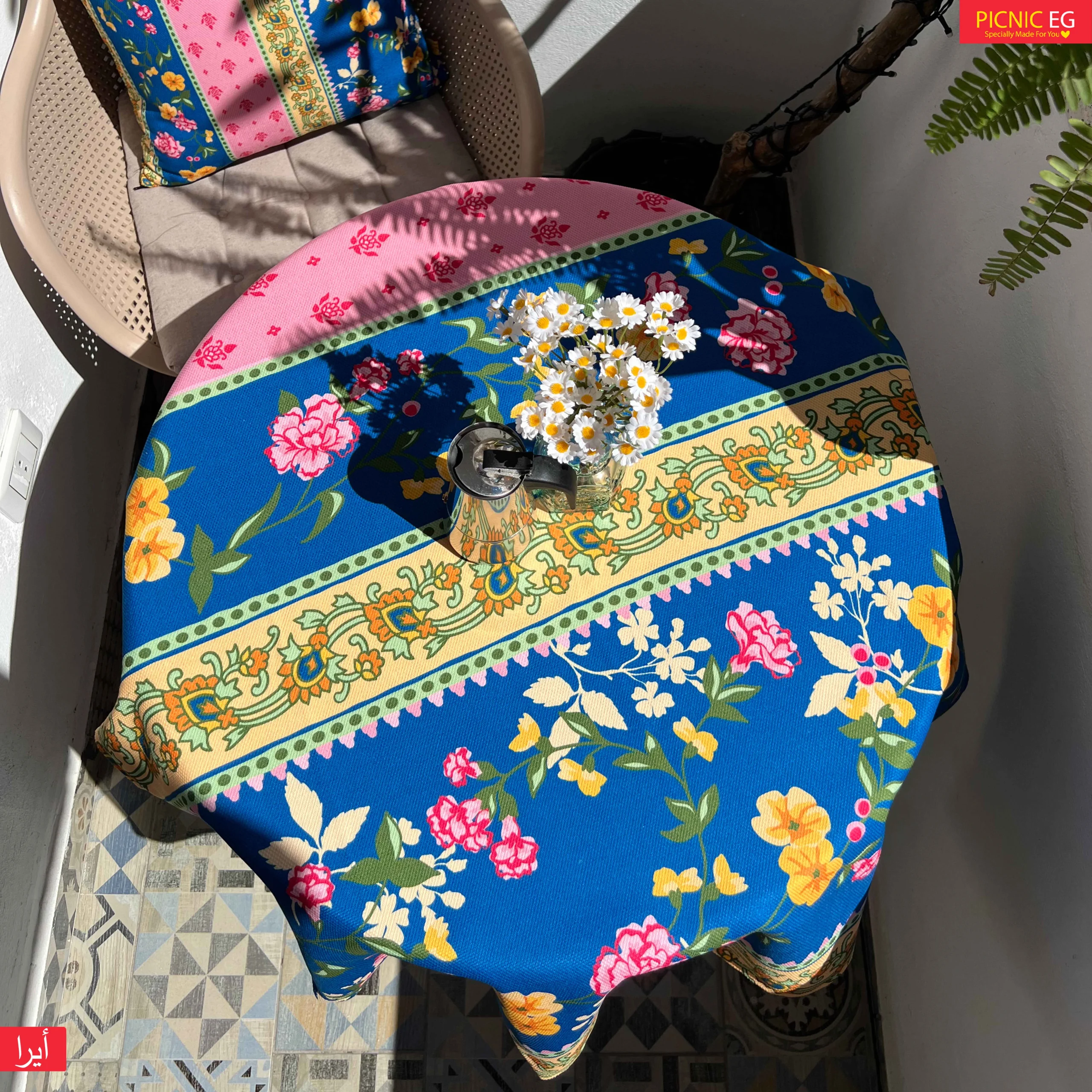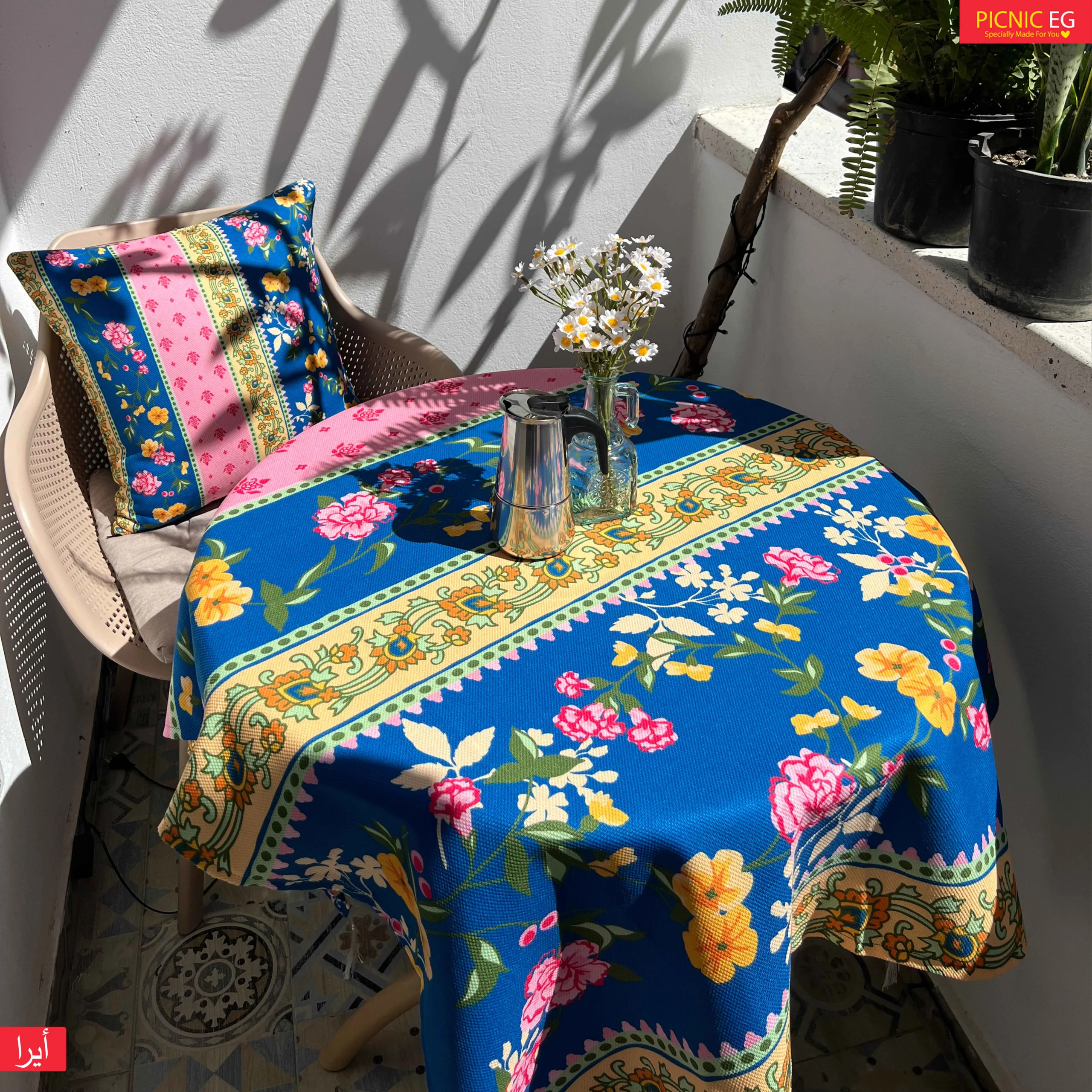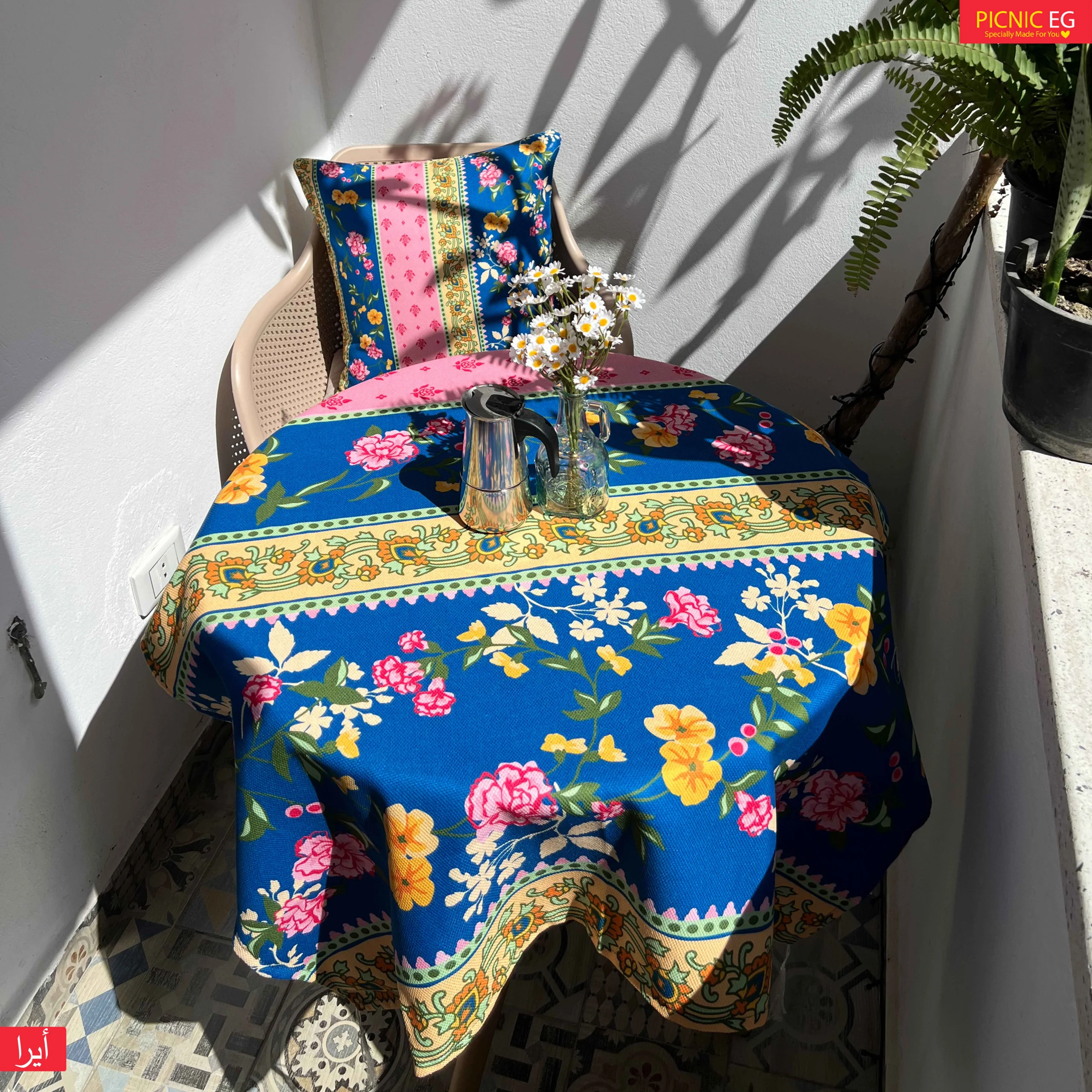 المفرش الجديد بتصميمه المبهج وألوانه الزاهية هيضيف لمسة حياة وطاقة إيجابية لأي بلكونة أو سفرة 🌸🌼