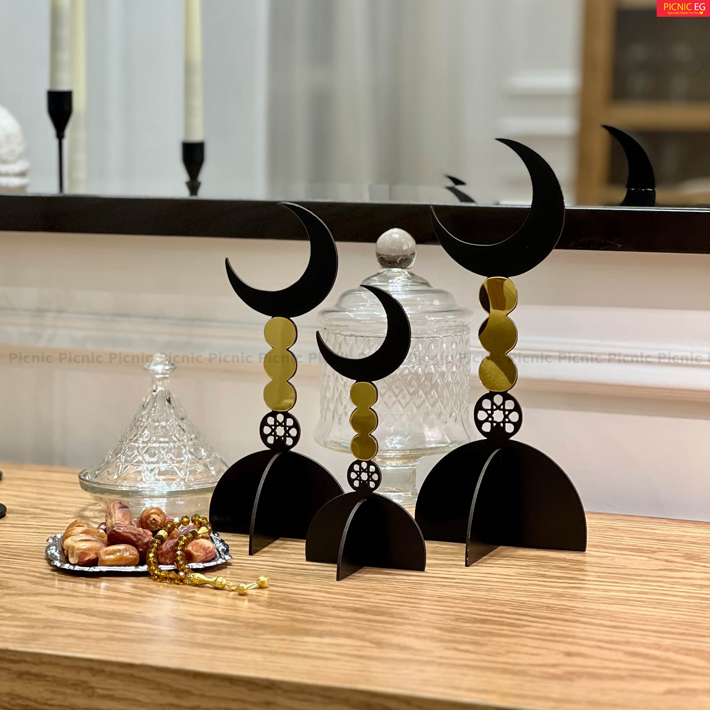 قطع ديكور رمضان بتصميم إسلامي مميز، مستوحاة من الزخارف والعمارة الإسلامية، تضيف لمسة روحانية وأناقة هادئة لأي ركن في البيت. مناسبة للتزيين في رمضان سواء في غرف المعيشة، ركن الصلاة، أو مداخل المنازل.