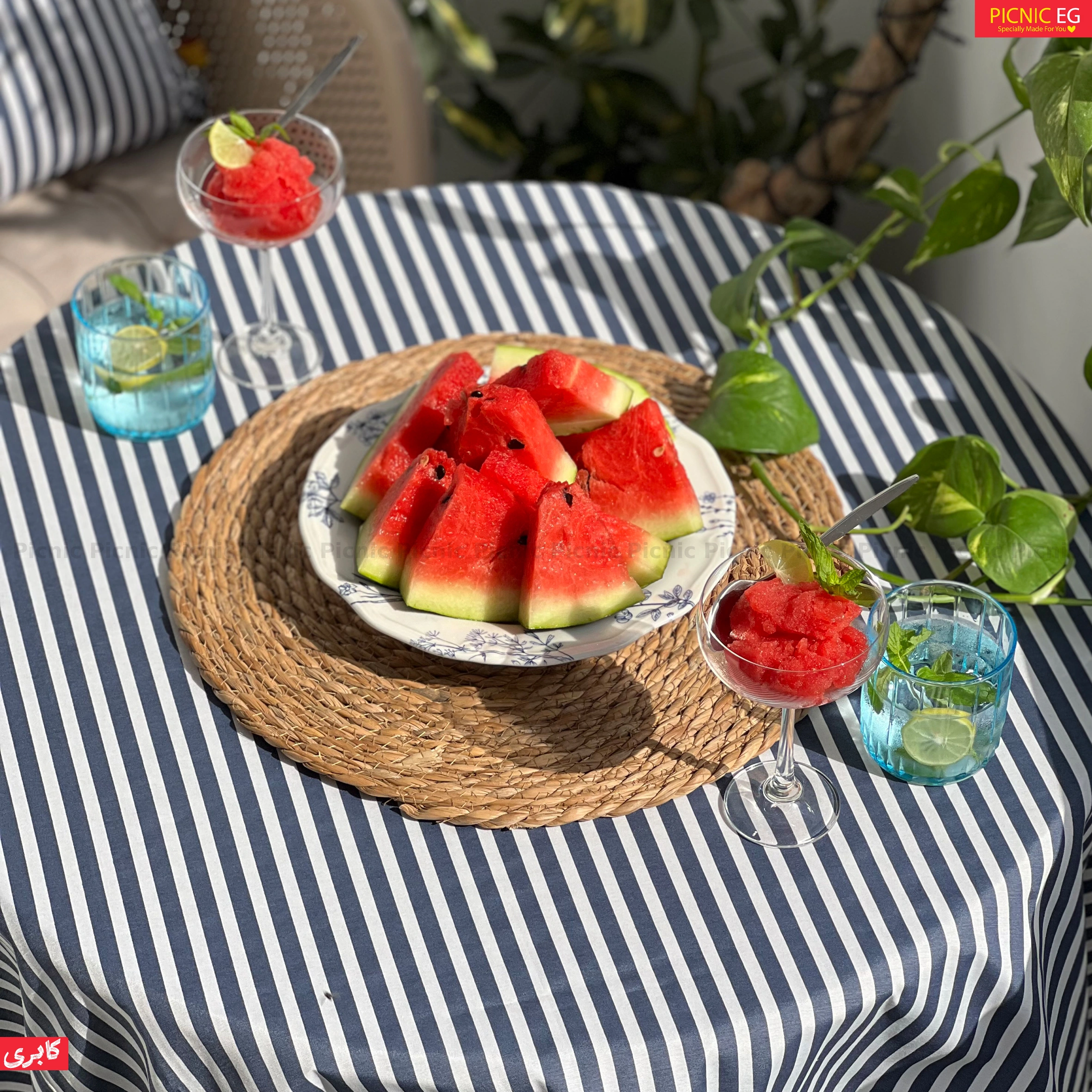 مفرش المخطط بتصميم أنيق ومميز، متوفر بمقاسات متعددة ليناسب مختلف الاستخدامات.