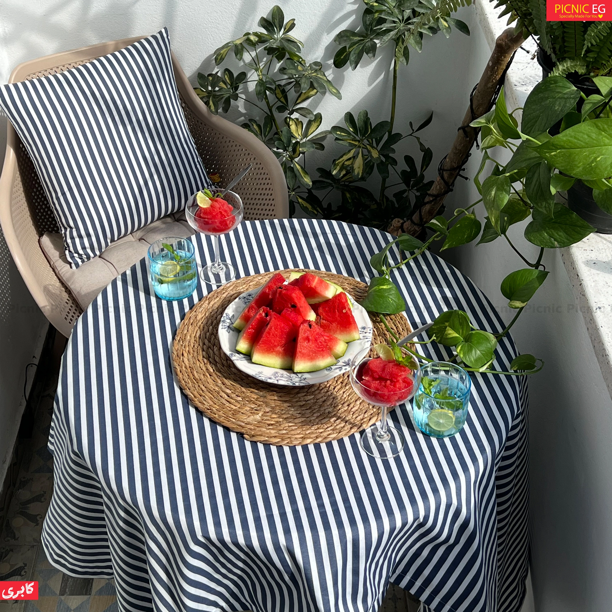 اختاري لمسة فخامة وعصرية مع مفرش المخطط. تصميم بسيط وأنيق يجمع بين الجاذبية والعملية، مناسب للطاولات حسب المقاس.