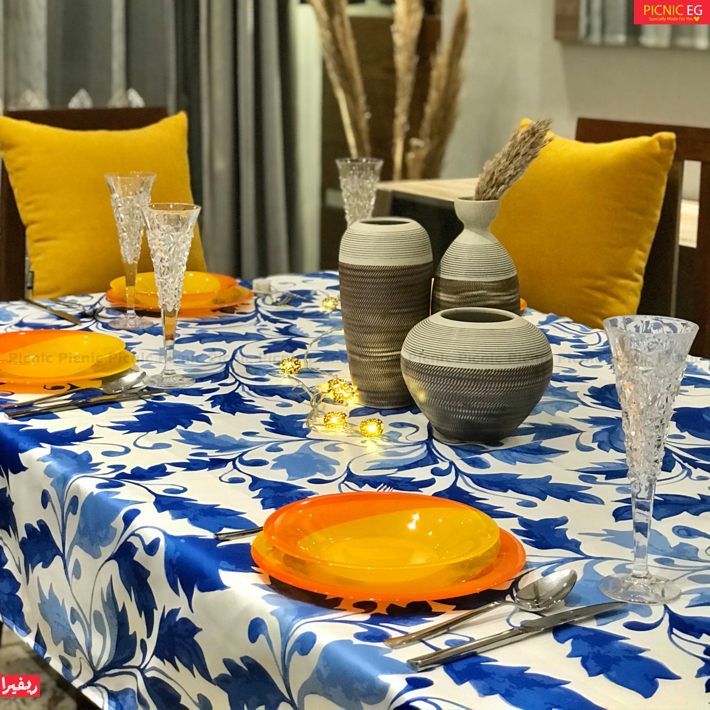 بتصميم بسيط ونقي بدرجات الأزرق والأوف وايت، مستوحى من سواحل البحر المتوسط، المفرش بيضفي لمسة هدوء وانتعاش لأي ركن في البيت.