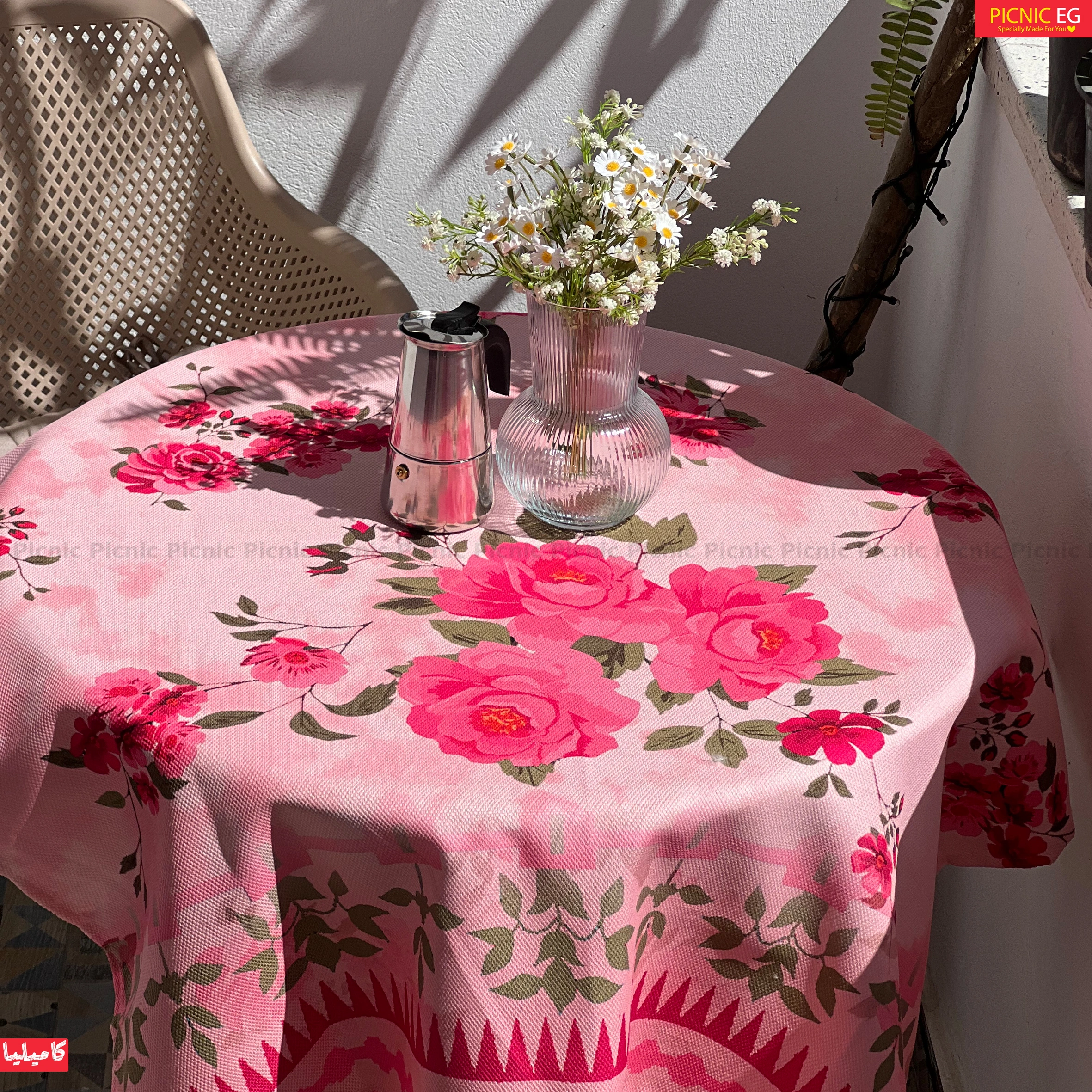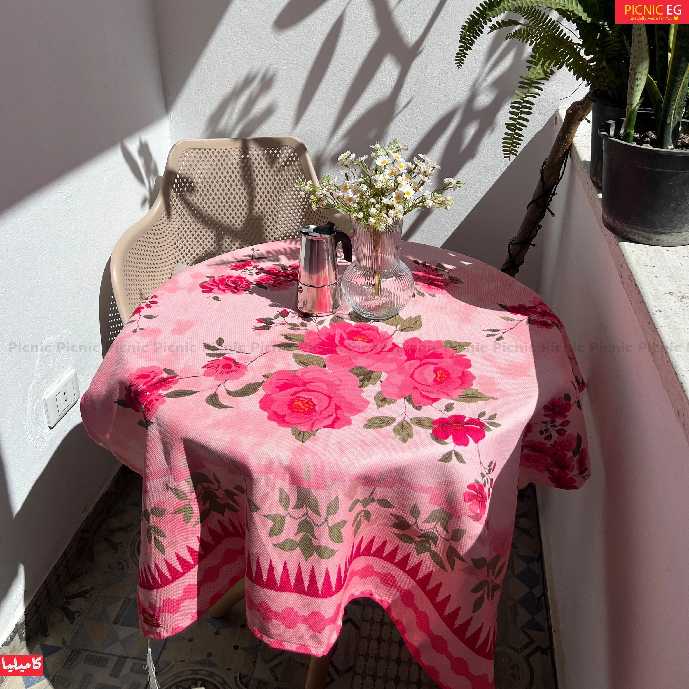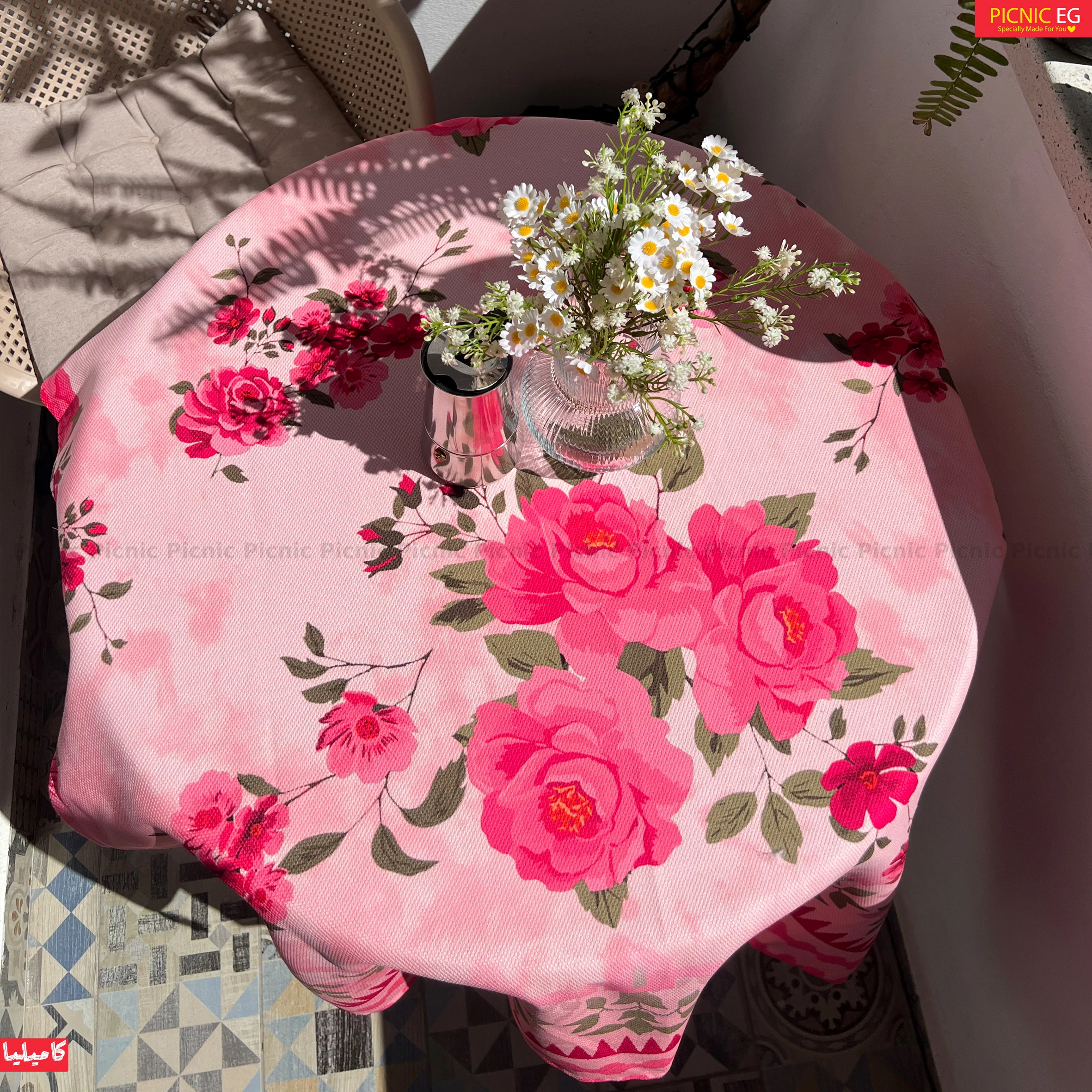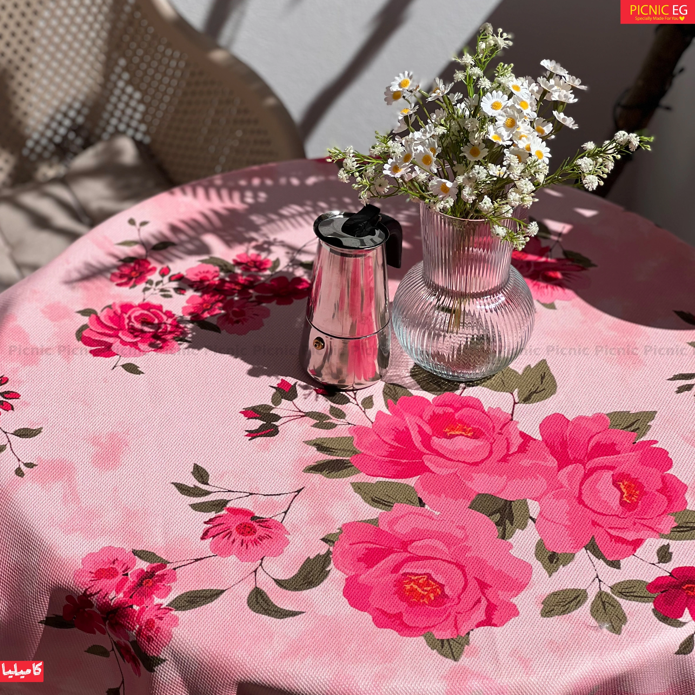 مفرش كاميليا بالبينك برسومات الورود الراقية، يضيف جو من البهجة والدفء لبيتك 🌹