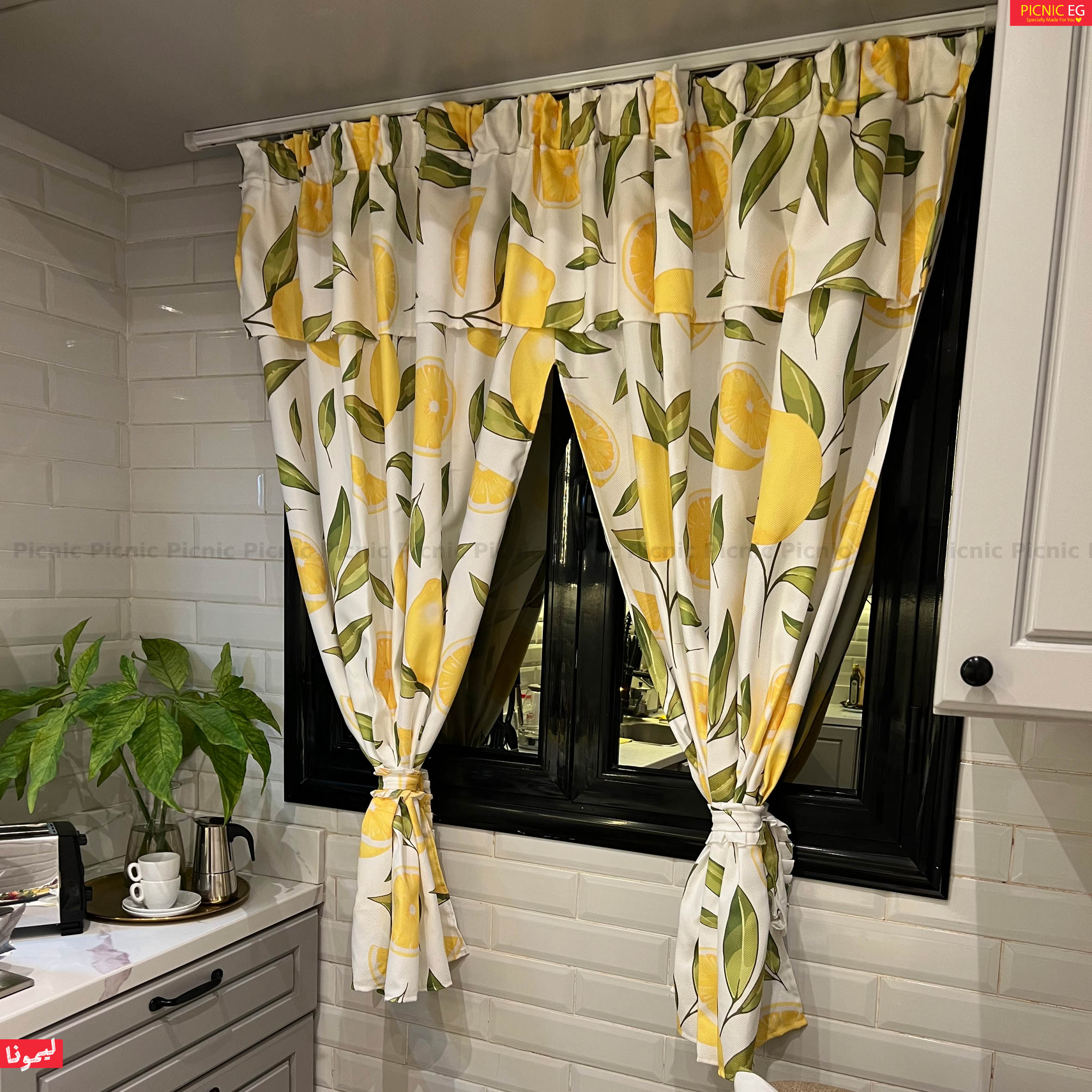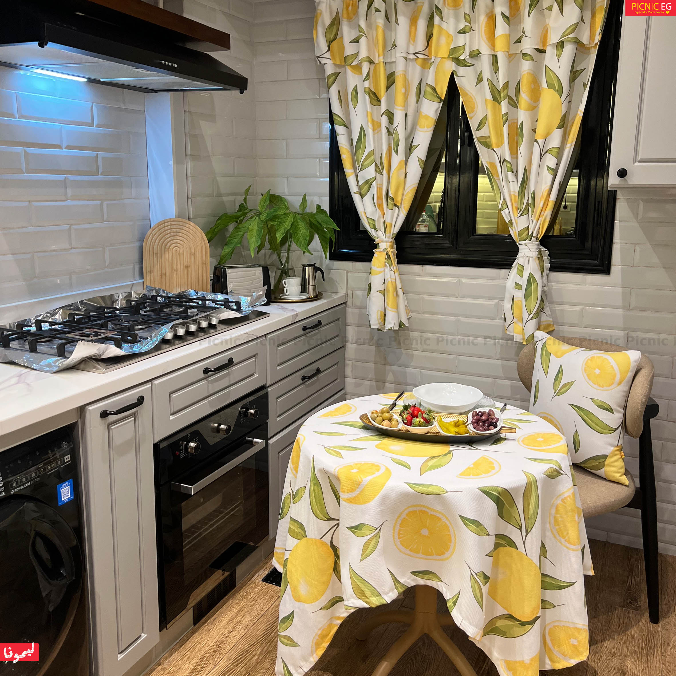 طقم ليمونا بجودة فائقة وتصميم راقٍ يضفي لمسة جمالية على منزلك. خامة قطنية فاخرة وثقيلة، بطباعة ثابتة تدوم طويلًا، ومتوافر بعدة مقاسات للمفرش أو الستارة لتناسب جميع الأذواق