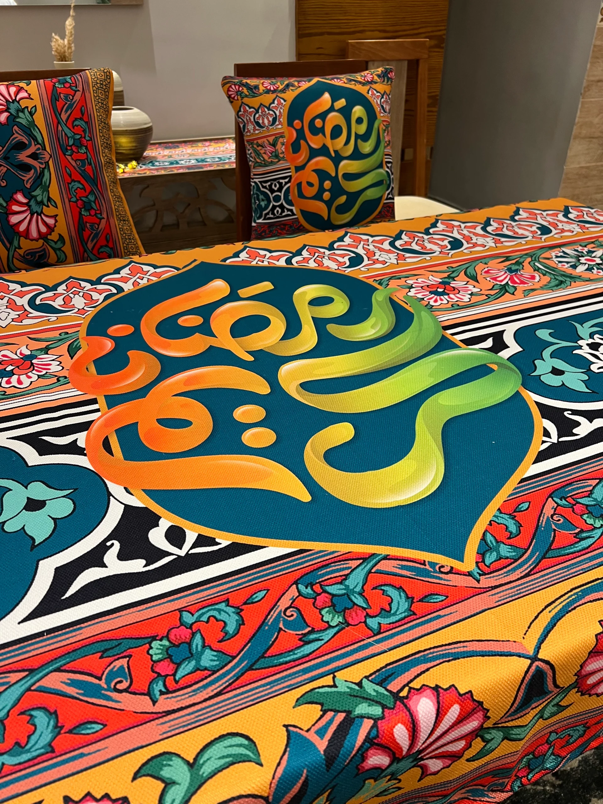 مفرش بتصميم رمضانى بخامة قطنية ثقيلة متوفر فى أكثر من مقاس مختلف