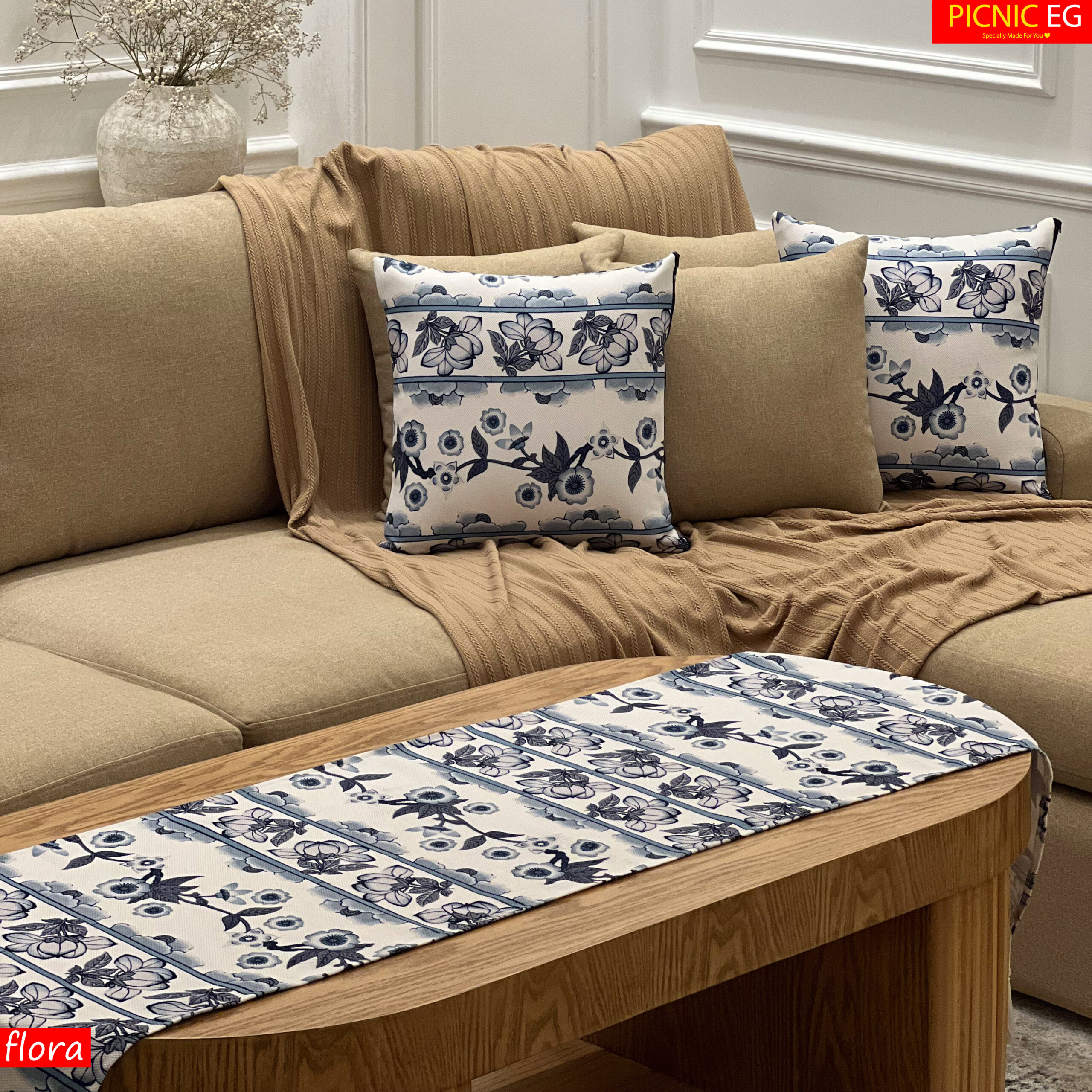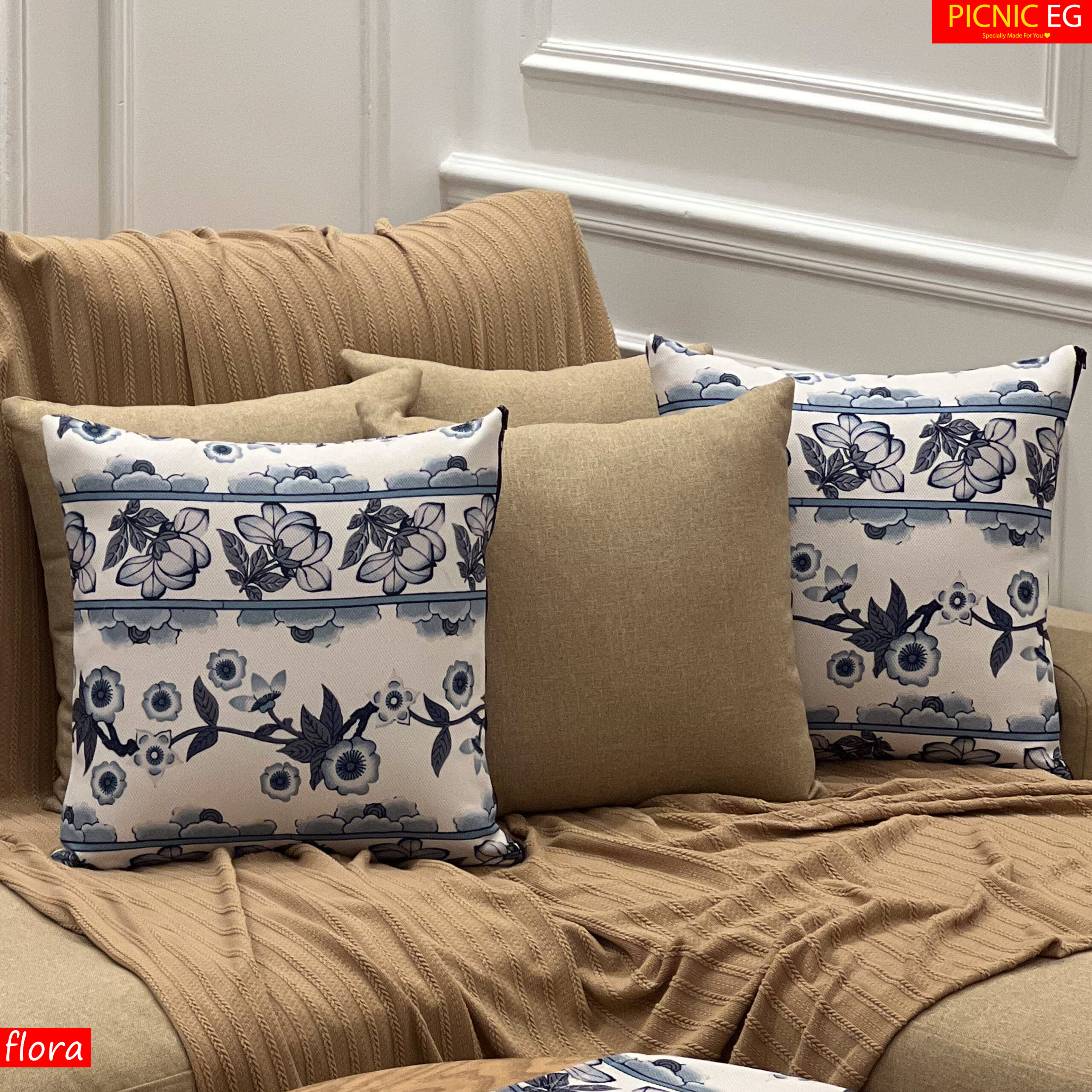 طقم فلورا بجودة عالية وتصميم أنيق يضيف لمسة جمالية لبيتك . خامة قطنية ثقيلة ، طباعة ثابتة