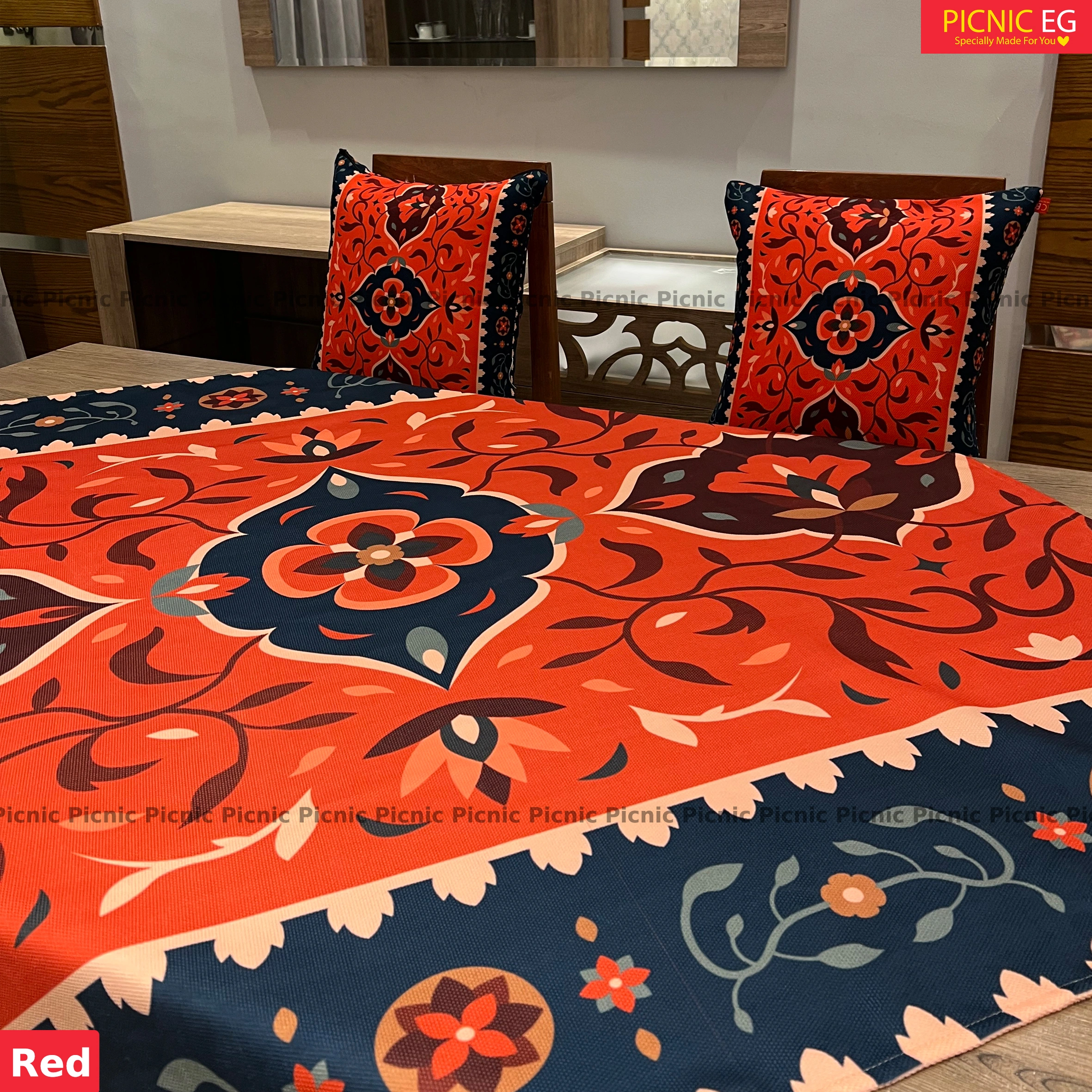 مفرش سفرة من قماش قطني تقيل. تصميم راقٍ يناسب أي بيت ويكمل ديكور السفرة بأناقة.