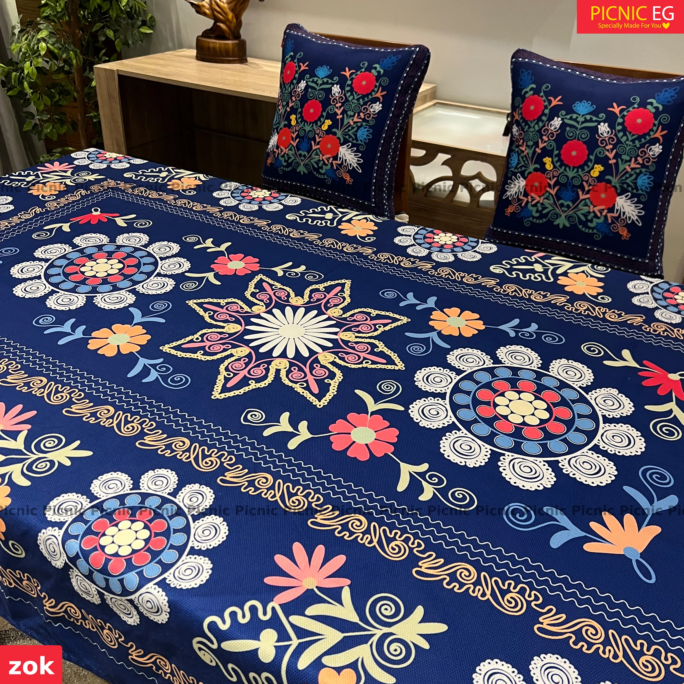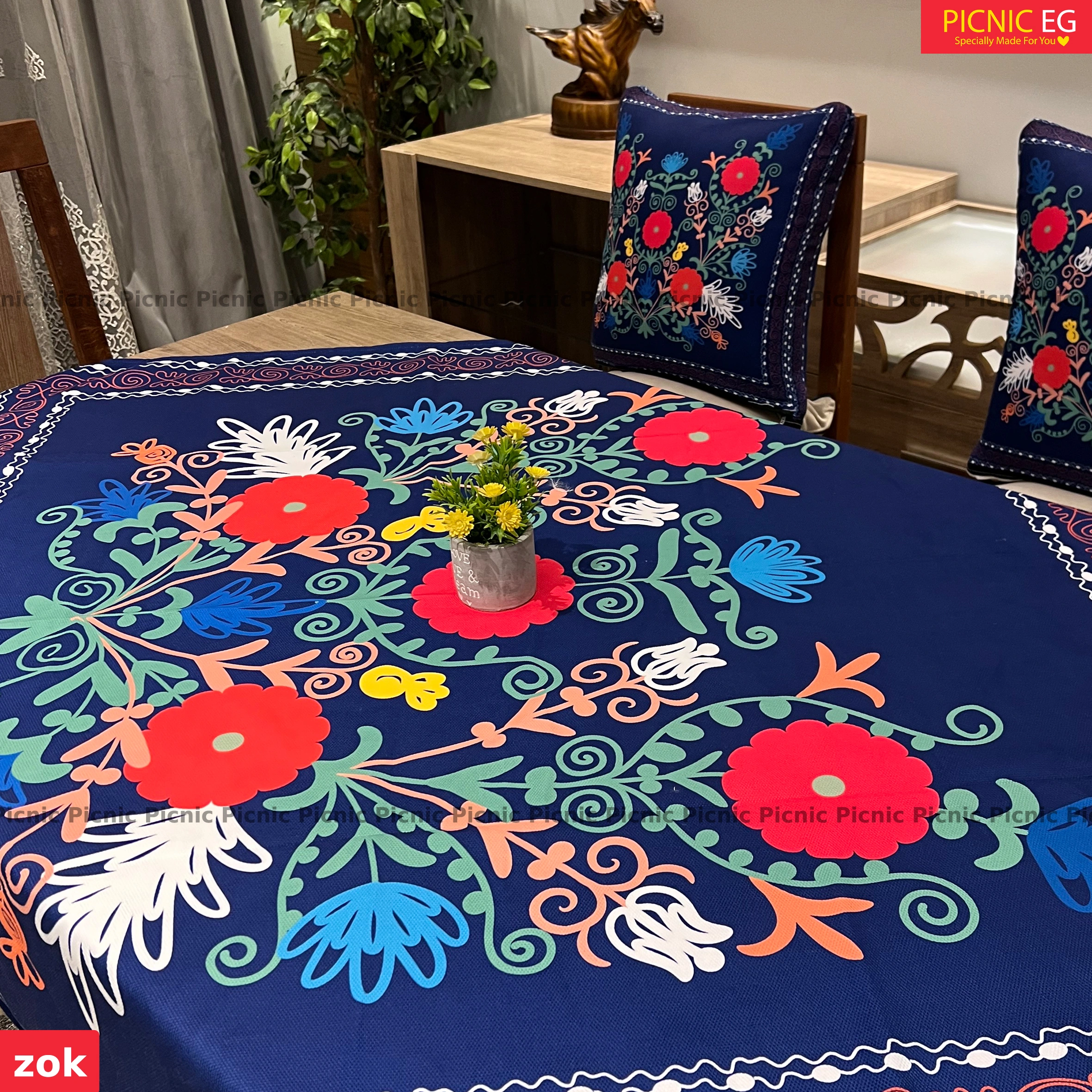 مفرش سفرة من قماش قطني تقيل. تصميم راقٍ يناسب أي بيت ويكمل ديكور السفرة بأناقة.